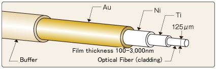AM Compass Group Inc. proudly announces a new addition to our optical cable product line, it complement our effort to provide hermetic sealing of optical fiber to devices. A layer of nickel, or nickel and gold are deposited to the cladding layer of stripped fiber, allowing fiber to be soldered to feedthrough, input tubes and housings. We offer single fiber or ribbon fiber metalized either at one end, or mid-span, can be combined with fiber arrays and fanout out to LC MU SC or terminate to MPO/MTP. Single strand optical fiber metalization