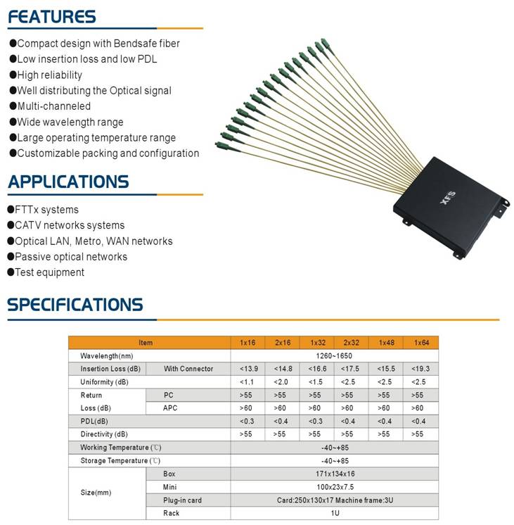 complete line of PLC based splitters for FTTX applications. Our splitters